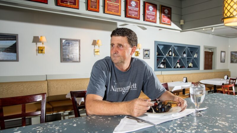 12 p.m. Moffett’s home is located between his three restaurants, making for a much easier commute than when he lived in Ballantyne. He heads to Barrington’s first and often makes stops on the way to pick up fish, for example, or handle business at the bank. When he arrives at Barrington’s, a Foxcroft staple for more than 20 years, he meets with general manager Peggy Gibouin. She was the first employee Moffett hired when he opened the restaurant, his first, in 2000. Now, she manages the books and paperwork for all three restaurants in the Moffett Restaurant Group.