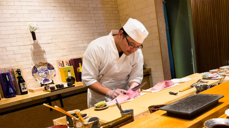 Chef/owner Robin Anthony of Prime Fish and Omakase by Prime Fish cooks in front of guests at Omakase. TM Petaccia/UP