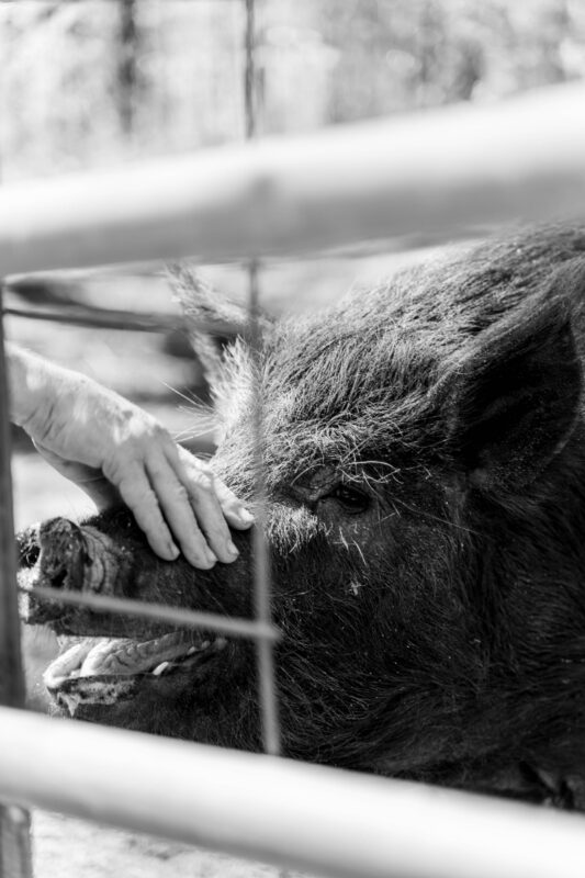 A mulefoot breed pig at Raven Micro Farm, a breed that would likely go extinct without small farmers. Photo by Ryan Allen