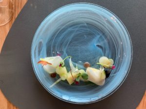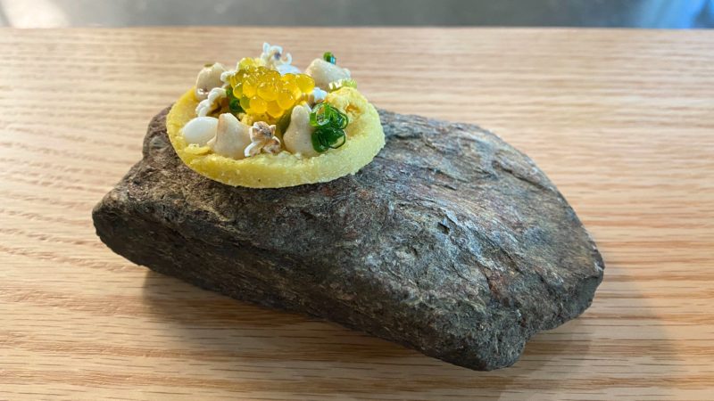 The 10-course meal is meant to tell a story, with the theme changing seasonally. The debut menu is called Terroir, and features dishes that show off the terroir of North Carolina. Several take inspiration from the state’s indigenous residents, while others highlight formative experiences in Hart’s life. There were a few small hiccups — a dish entitled Warmth, for example, was lukewarm by the time it had its final touch — but no course fell flat.