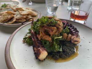 Eat This: Grilled octopus with marinated butter beans paired with the local lettuce salad