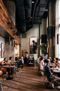 The dining room at Haymaker looks into Romare Bearden Park. Photo courtesy.