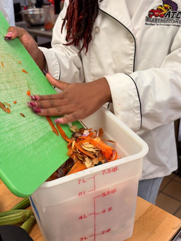 Barnes teaches under South Carolina’s ProStart curriculum, covering knife skills, food safety, costing, and kitchen fundamentals. But the experienced restaurateur brings something different the school’s table: industry reality — from burn scars to balance sheets. He veers beyond the textbook, pushing students into modern restaurant thinking. During his recent Vegetable Week, instead of simply sautéing green beans, students might make vegetable pancakes. Leftover potatoes might become brownies. Scraps are stored frozen for stocks or go into a dehydrator and re-emerge as house-made seasonings. Zero waste isn’t just classroom theory here. It’s real-world practice.