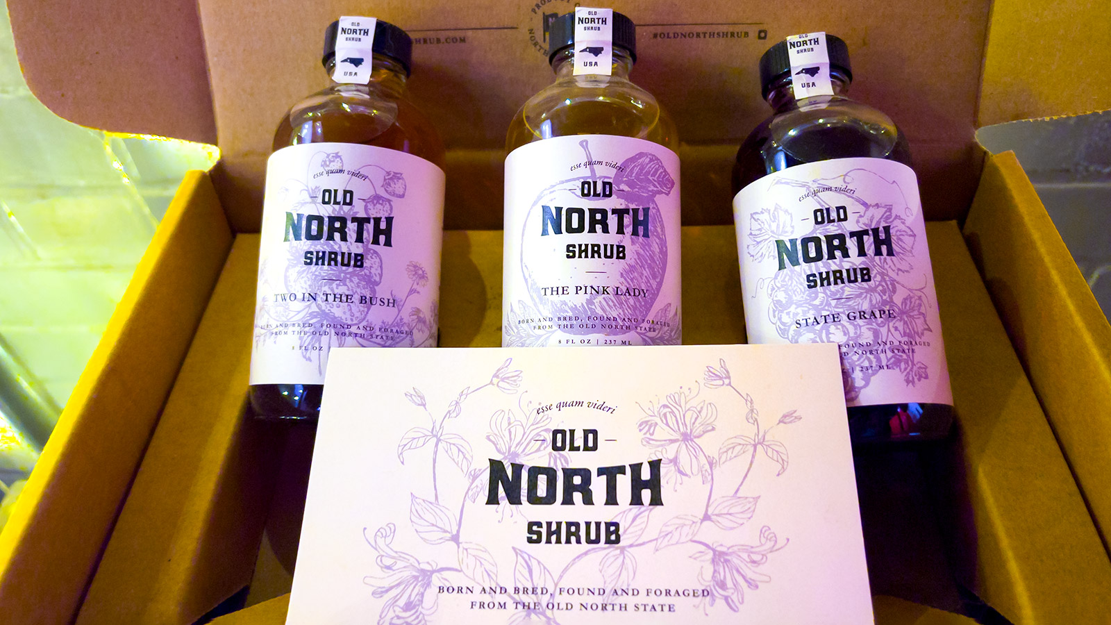 Along the way, Swofford managed to build a beverage brand, too. In 2015, Jason, Jeff, and Sarah Alexander, who co-own Free Range Brewing, invited Swofford to develop a nonalcoholic drink option for when they opened the brewery. Swofford went down “the rabbit hole of vinegar-based beverages.” They weren’t new to him. His grandmother claimed that a capful of vinegar would keep mosquitoes at bay when Swofford played outside as a child.He leaned on his agriculture community, sourcing blackberries, strawberries, and muscadine grapes from local farmers. He grows other shrub ingredients himself: ginger, turmeric, hibiscus. The shrubs are rooted in place, the product of “modern North Carolina ingredients using century-old techniques.” They took off. In April, his State Grape Shrub won a Good Food Award, and Swofford has picked up customers as far away as the West Coast.