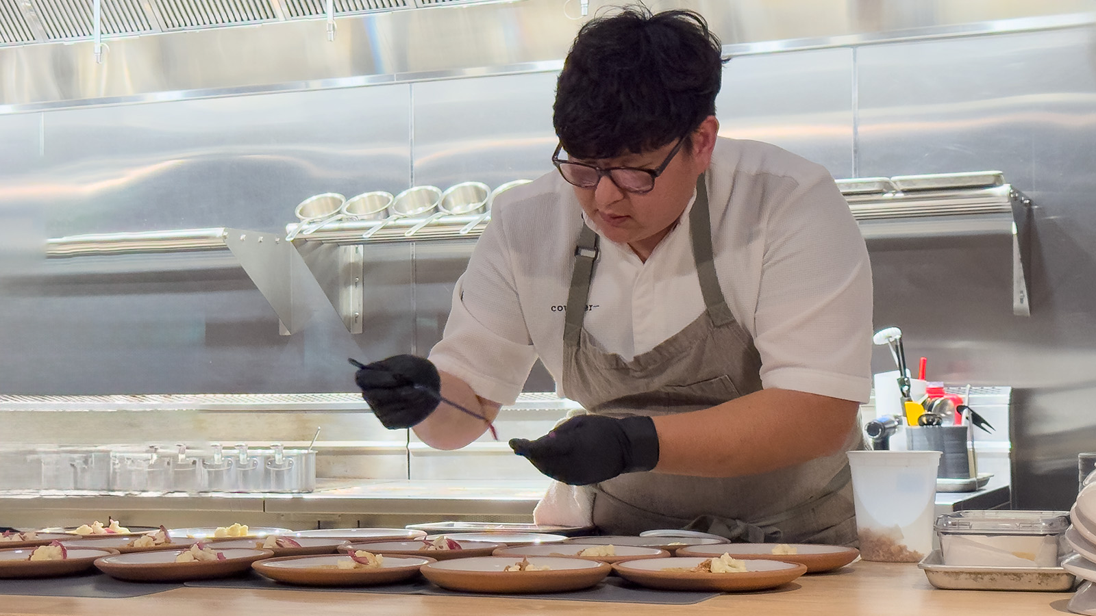 Hwang’s restaurant experience includes holding a sous chef position at two-starred Michelin restaurant Jungsik in Seoul, South Korea. He moved to the United States in 2019, and joined Counter- as chef de partie in 2021. He was named Unpretentious Palate’s “Chef to Watch” in 2022’s UPPY Awards.