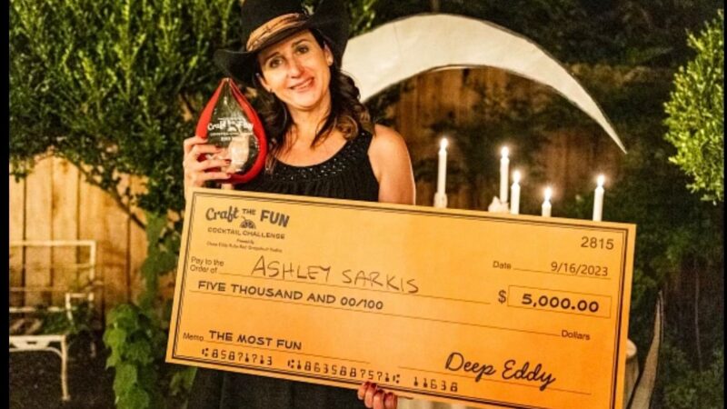 Ashley Sarkis with her prize money following a win in a Deep Eddy cocktail contest. Photo by Darrin Commerford
