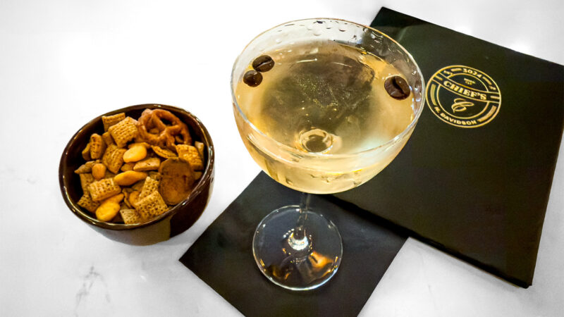 Meanwhile, Bob Peters at the just-opened Chief’s in NoDa has developed a plant-based version where neutral oil is infused with ground espresso beans, strained, and then used to wash Statesville’s Southern Star white whiskey. The result is mixed with a little sherry and simple syrup to produce the bar’s Rise & Grind. Peters says, “It’s an espresso martini, but better.”