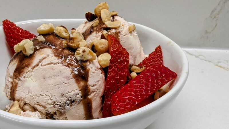 Roasted Strawberry and Chocolate Hazelnut Fudge No-Churn Ice Cream