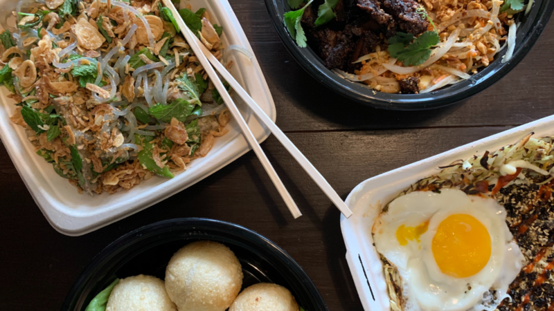 JW: There’s the classics section — it can be a one-person thing that you could just eat, but can definitely share these dishes too. The snacks section on the menu is really there to encourage people to get one more thing to try. This is food you don’t really see elsewhere, like the fried mochi. Or maybe you grab something to eat then and have leftovers for later, which is never a bad thing. You get a chance to try a couple different things. You could probably get two or three snacks and be totally fine. The sides are rice, papaya salad, or greens. If you’re dealing with a lot of food that has big bold flavors, it’s a nice bite to help reset the palate.