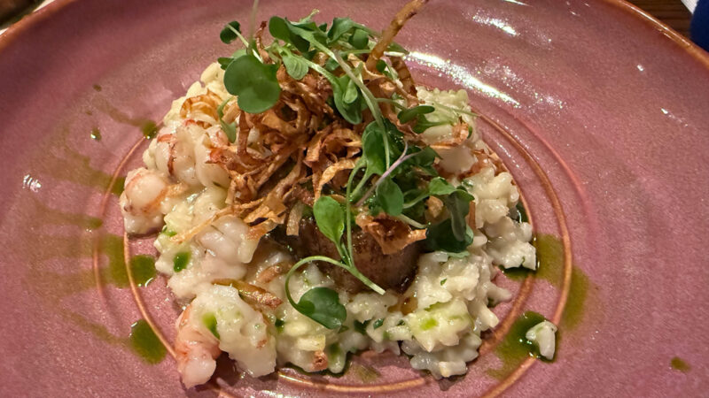 The Seaboy menu features the style of creative seafood dishes Cox became known for as chef at Fin & Fino, including a rotation of raw oysters served with house-made hot sauce and cilantro mignonette, grilled octopus with pistachio romesco, and scallops with rock shrimp risotto (pictured above).