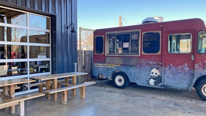 The food truck is parked alongside the brewery’s covered upper patio, selling its popular dumplings seven days a week. From its current position, the truck can’t easily be moved, so The Dumpling Lady won’t be traveling elsewhere. Food Truck Fridays, where the brewery brings a variety of food trucks to its parking lot, will continue.