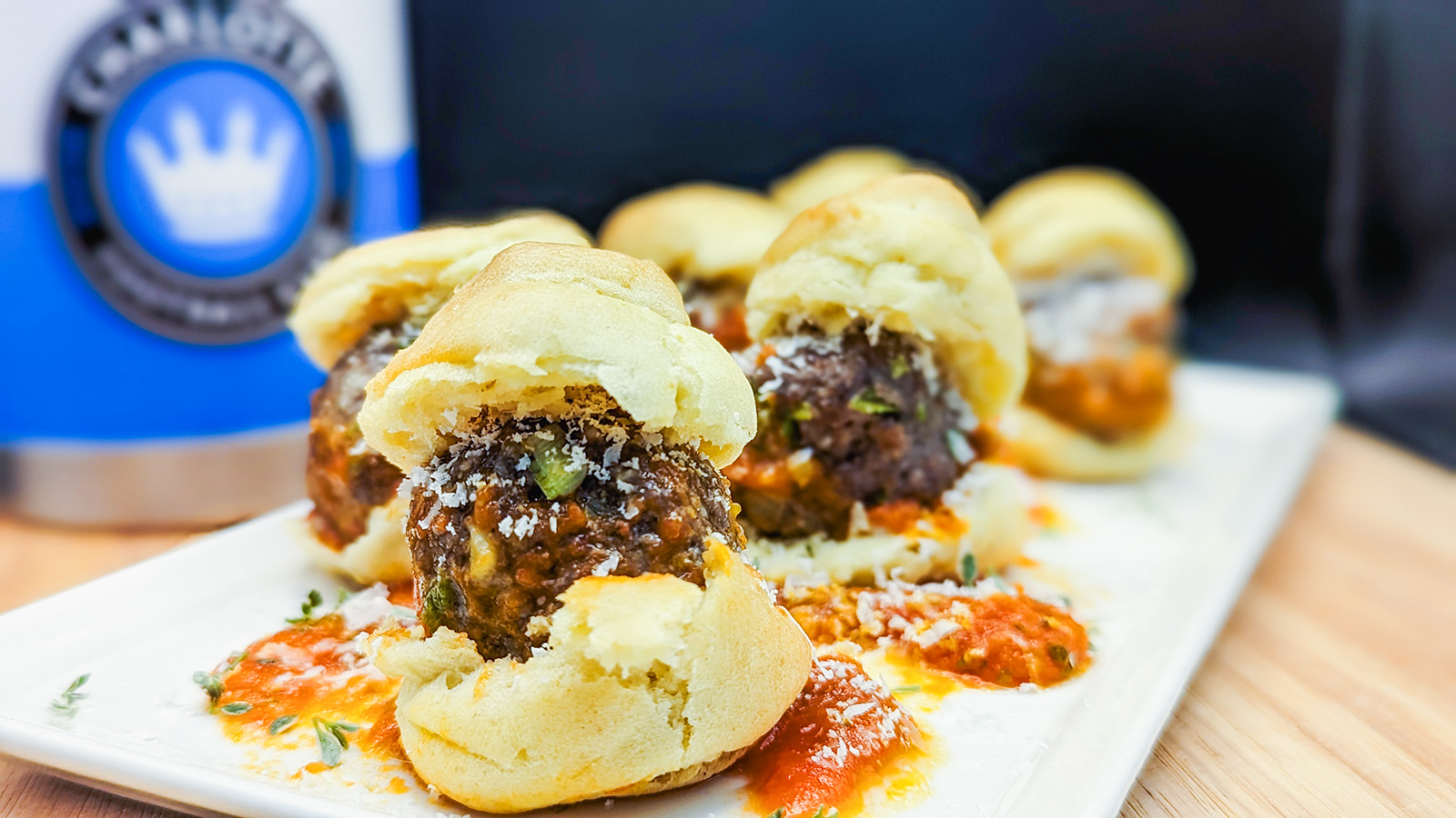 Meatballs were always in rotation at my family’s house growing up. As a parent, I get the allure of something to keep tiny hands busy, and building some beautiful memories. This Spanish variety of meatball has a bit more tooth and deeper flavors, and when paired with the Spanish cheese puff Buñuelos, you have a beautiful combination to make a great game day app. A riff on a meatball sub, this bite-sized snack is a party pleaser, and pairs beautifully this time of year with your favorite local brew.
