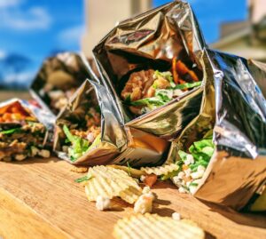 Enter the walking taco, a favorite of street vendors for its efficiency and ability to be eaten on the go. It is the “Choose Your Own Adventure” equivalent to a fusion of flavors and place. The dish starts with a choice of chips (Fritos and Nacho Doritos are favorites), and meats, cheese, salsas and anything else that fits in the bag round out the glory of the walking taco. So whether your crowd is more gourmet or a bigger fan of cooking out of a box, they’ll enjoy their own simple or more elaborate creation out of this easy-to-put-together group of ingredients. I hope you enjoy it, and are inspired to choose your own adventure.