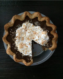 - Before serving, top pie with whipped cream and shaved chocolate or toasted coconut. Pie can be stored, chilled, for up to 3 days.