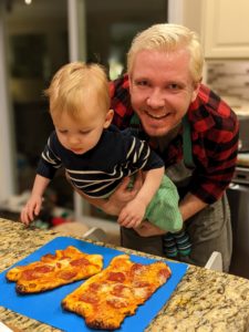 Justin with his son Jasper making pizza. Justin Burke/UP
