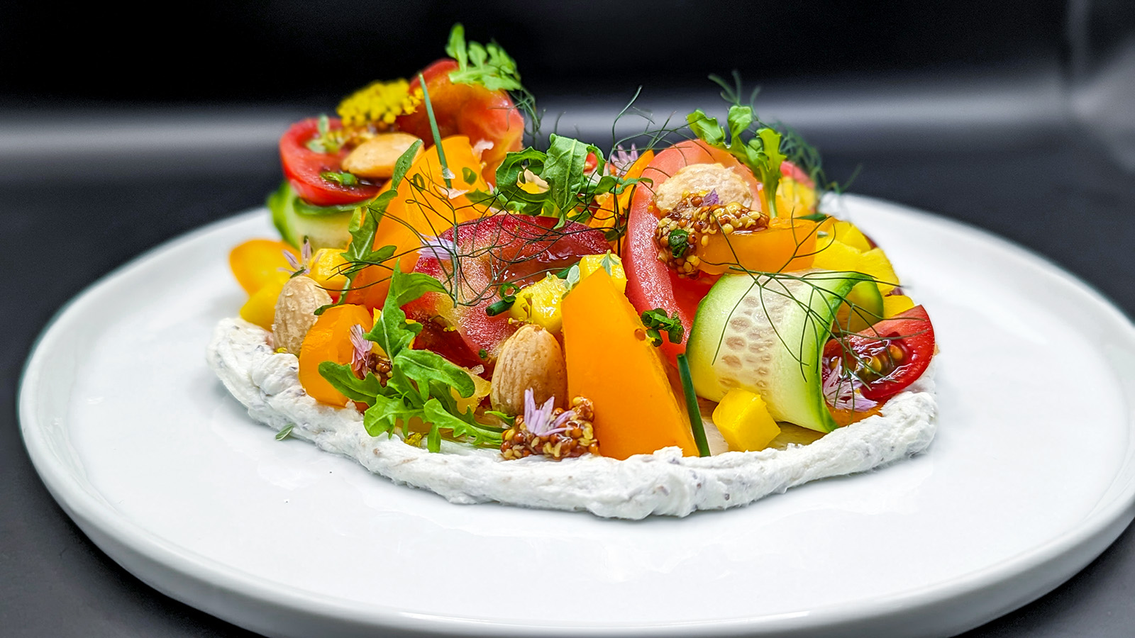 Summer is here. The seasonal bounty at the farmers market is growing by the week. Stone fruits, mid-summer tomatoes, and melons are in full swing. At The Asbury, we were constantly coming up with different composed tomato dishes — the versatile fruit lends itself to so many applications and an even more variety of counterparts on the plate. Sometimes we’d add some basil gelato or maybe make a cornmeal pâte brisèe with some of the most unctuous UAV Cottage Cheese.