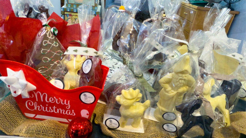 Get your chocolate Santas, reindeer, snowmen, and Christmas trees, crafted by master chocolatier Jean Luc Barrucand. You can also pick up his gingerbread houses and gingerbread men. Purchase in store.