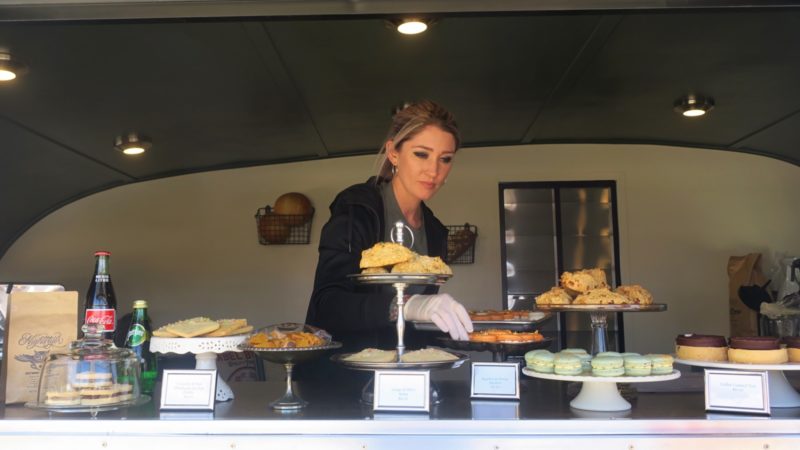 Wentworth + Fenn, the baked goods company run by the former pastry chef of The Fig Tree, has finally launched its Shasta camper. Allen was in Plaza Midwood today outside of Moxie Mercantile on Commonwealth Avenue selling coffees, pastries, macarons, and tarts from the newly-refurbished Shasta she’s calling Selma.