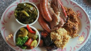 One pound of sausage, two pounds of rib tips, four chicken thighs, corn on the cob, cucumber-tomato salad, and slaw are on the menu for this Belmont neighborhood barbecue spot. Serves 4-6, $55. Add a frisbee and two koozies for $10. Preordering encouraged, pick up available Thursday through Sunday.