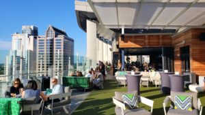 If you’re not attending the Knights versus Norfolk game or celebrating in Romare Bearden Park, we found a few rooftop restaurant and bar locations near the ballpark for firework viewing. The choices for rooftop views are sparse, and those available are higher end than a casual bar. The plus side, though, is less people, available food and drinks, and more comfortable seating arrangements.